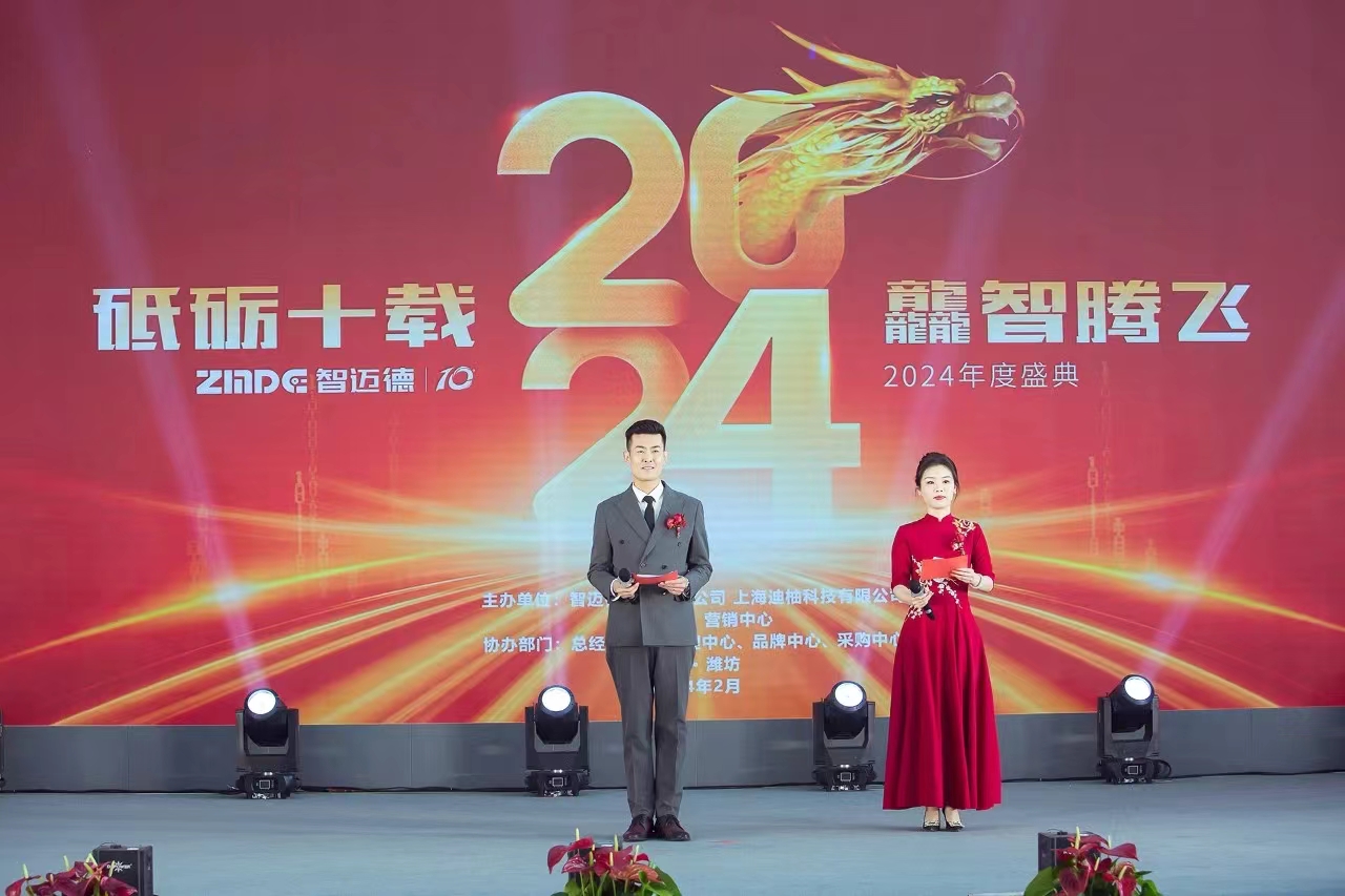 admin一元復始萬象新,歲月流金盛年來。2月5日,智邁德股份有限公司2024年“砥礪十載,龘智騰飛”年會在公司山東基地隆重舉行。智邁德全體員工與受邀員工家屬匯聚一堂,共同譜寫屬于智邁德的嶄新篇章!
