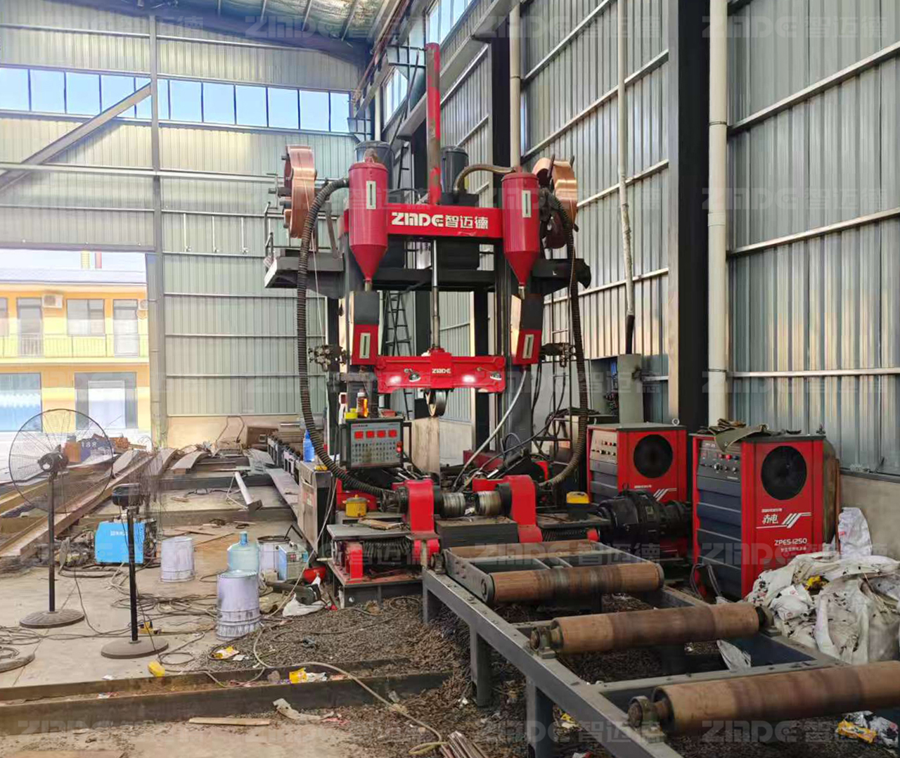 組立、焊接、矯正是鋼結(jié)構(gòu)生產(chǎn)的關(guān)鍵工序,也是孫總的鋼構(gòu)廠亟待提升的環(huán)節(jié)。“原來這三道工序需要不同的設(shè)備來完成,每臺設(shè)備需要人工操作,設(shè)備間的工件轉(zhuǎn)運(yùn)需要行車吊運(yùn)”孫總介紹道。當(dāng)時,工廠里的組立機(jī)、龍門焊、矯正機(jī)已經(jīng)陳舊老化,亟需更換。此時,“組焊矯一體機(jī)”進(jìn)入了孫總的視野。“這設(shè)備好”,這是孫總的直觀反應(yīng),“一臺設(shè)備就能替代原來的三臺設(shè)備”。然而,對于如何選擇哪家的設(shè)備,孫總還是下足了心思,做足了功課。最終,在經(jīng)過多方對比之后,孫總選擇了智邁德研發(fā)生產(chǎn)的裝配式H/T型建筑鋼梁組焊矯一體機(jī)。