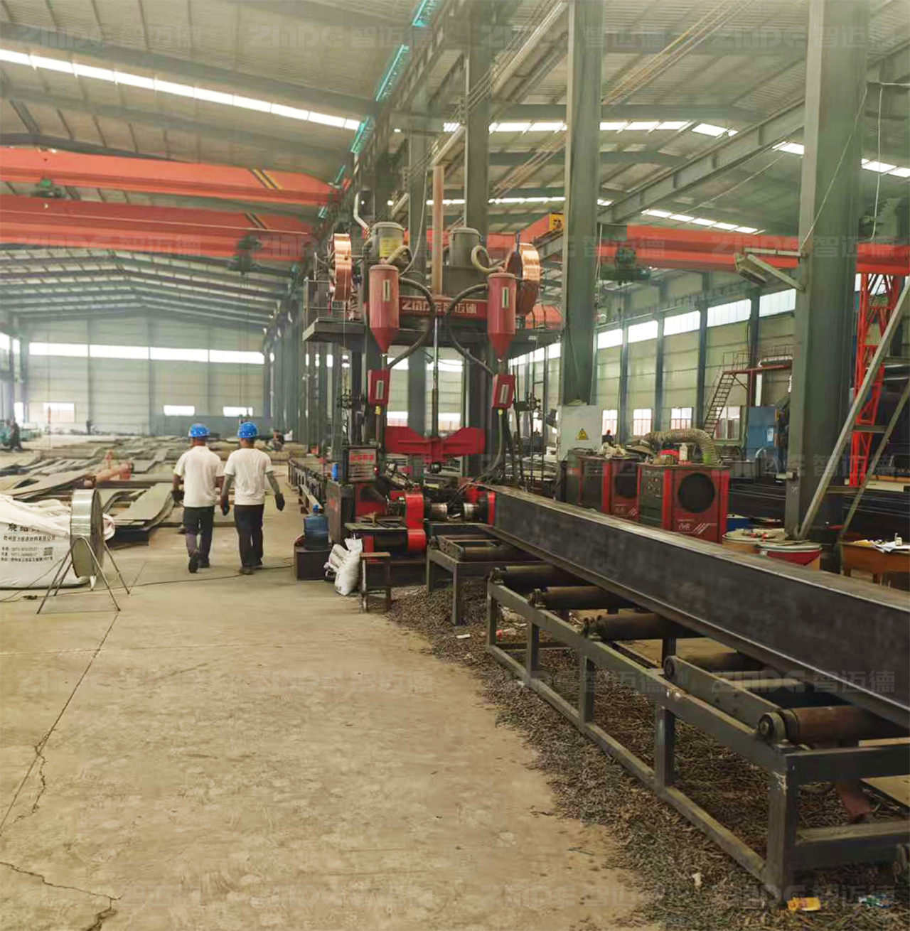 目前,市場(chǎng)上的鋼結(jié)構(gòu)加工設(shè)備琳瑯滿目,即便是主打智能化的設(shè)備,質(zhì)量也是參差不齊。對(duì)于一家新建的鋼構(gòu)廠而言,選擇的設(shè)備合適與否,至關(guān)重要。李總對(duì)此慎之又慎,最終一款擁有26項(xiàng)發(fā)明專利的設(shè)備引起了李總的注意。這款由智邁德股份有限公司研發(fā)生產(chǎn)的裝配式H/T型建筑鋼梁組焊矯一體機(jī),將組立、焊接、矯正三道復(fù)雜工序,集成在一臺(tái)設(shè)備上,做到了省時(shí)、省力、省人工。簡(jiǎn)單的咨詢過(guò)后,李總接受了智邁德的參觀邀請(qǐng)。
